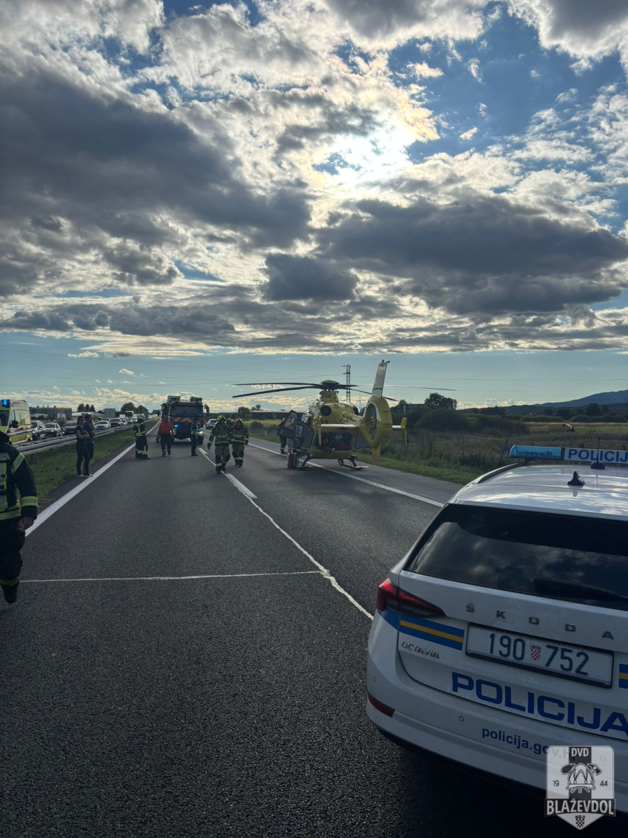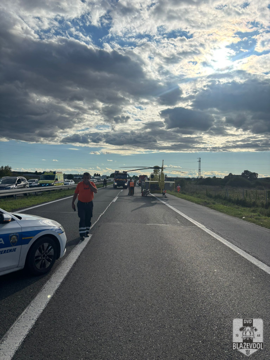 Dana 31.08.2025. u 16:55 od ŽVOC-a primamo dojavu o težoj prometnoj nesreći (sudar osobnog automobila i motora) na 88km A4 autoceste u smjeru Zagreba. Na intervenciju izlazimo s NV Blaževdol 110 i malim NV Blaževdol 116 te 4 operativca. Po dolasku na lokaciju uočavamo kako su tamo prisutni i djelatnici JVP Zagreb koji su uspješno oslobodili osobu te ju zajedno s djelatnicima HMP predali na daljnju obradu hitnoj helikopterskoj službi koja je osobu transportirala u KB Dubrava. Također prisutni kolege iz DVD-a Sv. Ivan Zelina, djelatnici MUP-a i HAC-a. Osiguravamo zonu oko helikoptera. Kraj intervencije u 19:20.