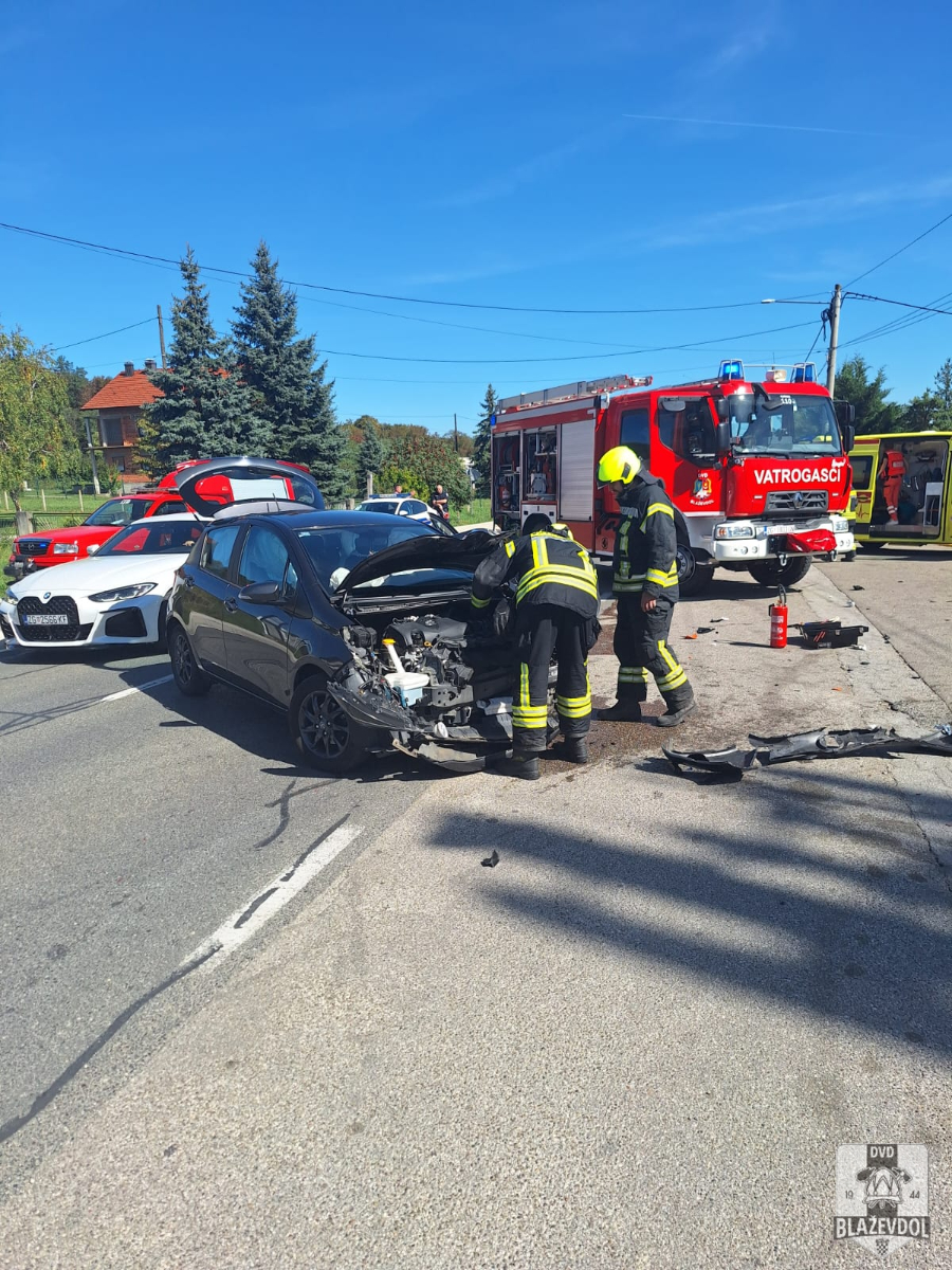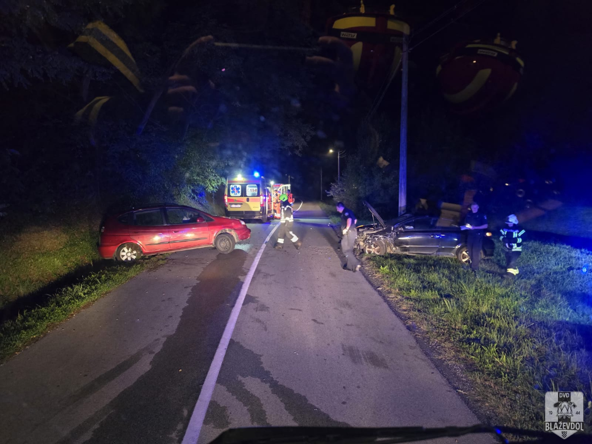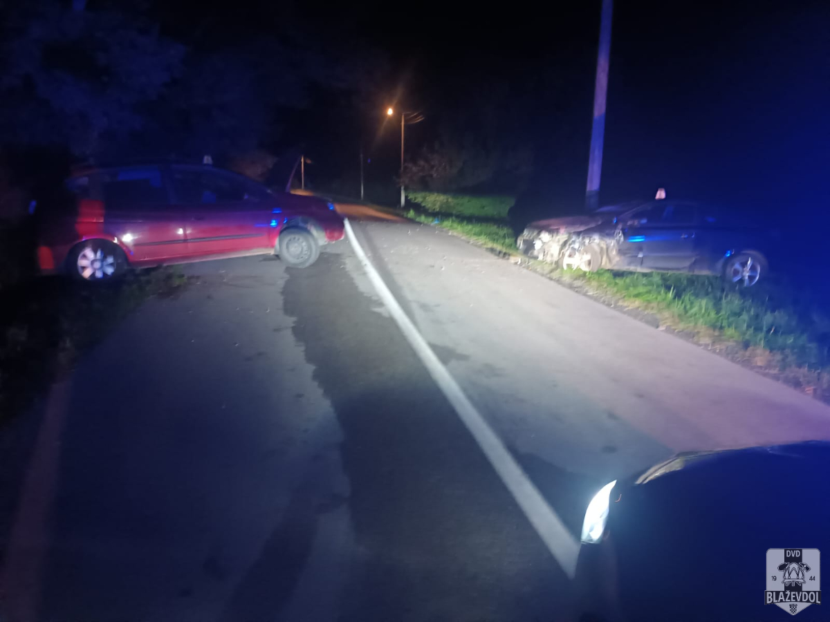 Dana 20.09.2025. u 03:12 od ŽVOC-a primamo dojavu o prometnoj nesreći u Blaškovcu u kojoj su sudjelovali osobni automobil ZG reg. oznaka marke Opel Astra i osobni automobil ZG reg. oznaka marke Daewoo. Na intervenciju izlazimo s NV Blaževdol 110 te 3 operativca. Po dolasku na lokaciju uočavamo kako su osobe iz oba vozila već na obradi kod djelatnika HMP. Dižemo rasvjetni stup na vozilu, vršimo vizualni pregled te otpajamo akumulatore na oba vozila. Djelatnici MUP-a prisutni. Kraj intervencije u 19:20.