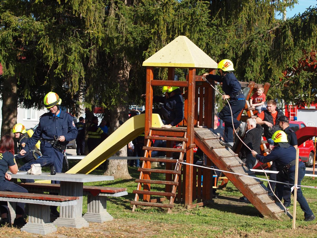 Nešto kasnije, u 14:00 počeli su pristizati svi DVD-i VZG-a Sveti Ivan Zelina. Naime, da to sve ne bude tako brzo gotovo, odlučili smo organizirati i Smotru vatrogasaca našeg Grada. Od 26 DVD-ova, odazvalo ih se 19. Svaki DVD je imao zadatak: poligon s nizom prepreka te ispitom znanja. Svi DVD-i su pokazali zavidnu razinu spretnosti i spremnosti, a najbolje su se pokazali dečki iz Tomaševca kojima ovim putem čestitamo! Također, ekipe Blaževdola, Zeline, Komina i Paukovca odradile su pokaznu vježbu spašavanja unesrećene osobe iz vozila, rezanje i požar vozila, spašavanje uz pomoć hidraulične zglobne platforme te požar guma. Nakon službenog dijela, naša ekipa se pobrinula za bogatu ponudu ića i pića dok nas je sve zabavio Story Bend.
